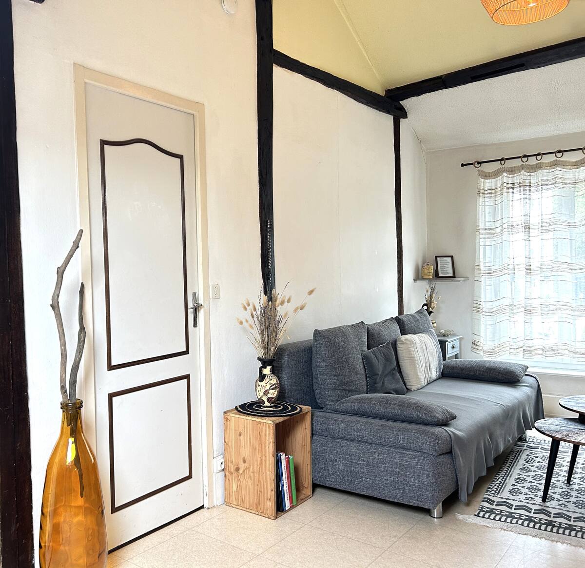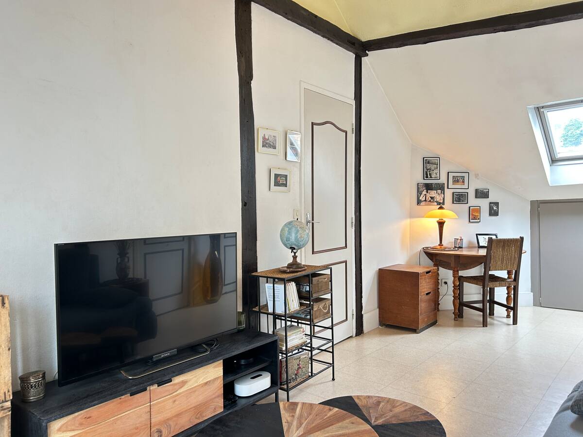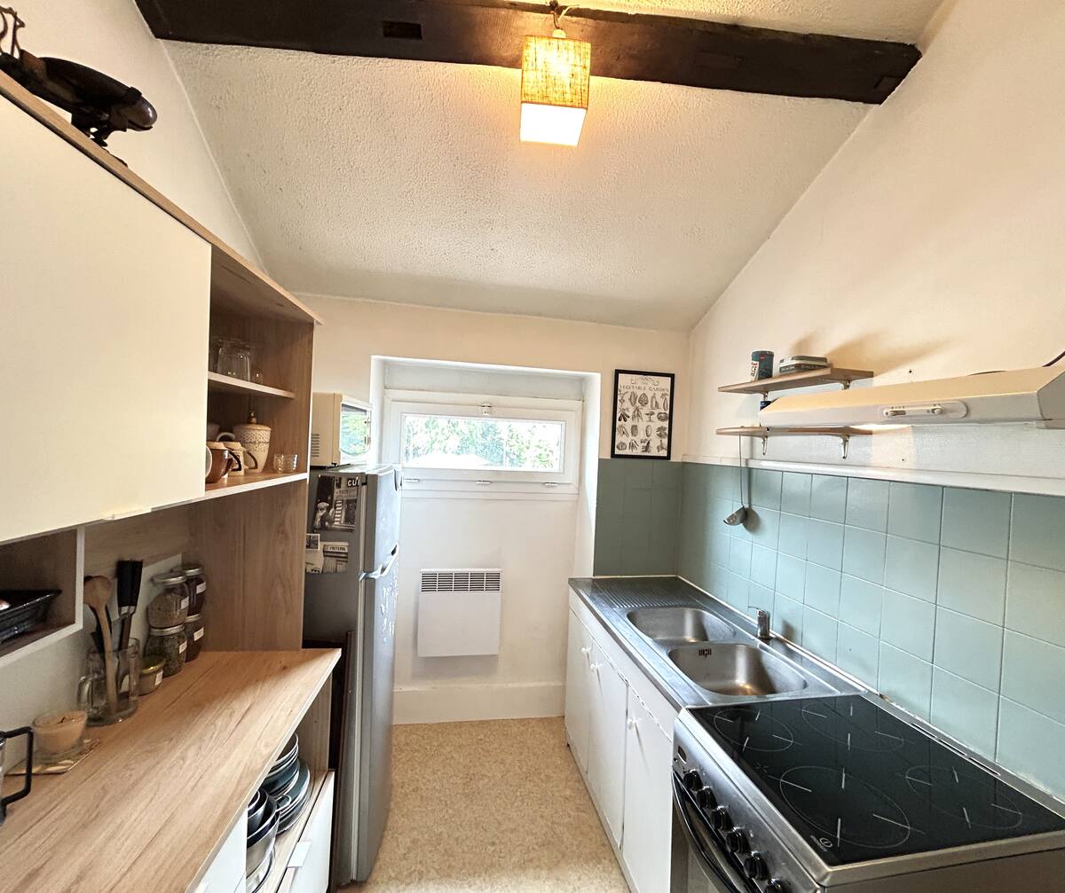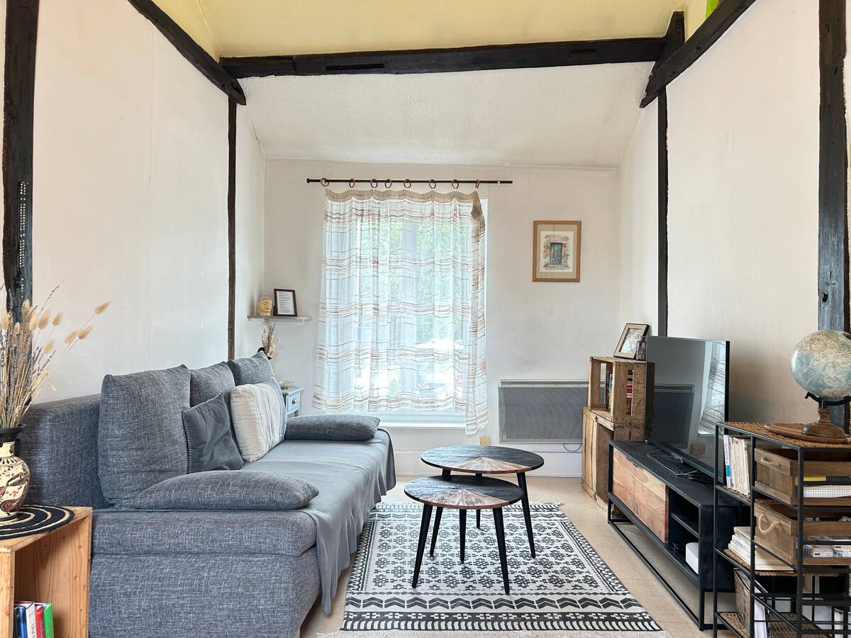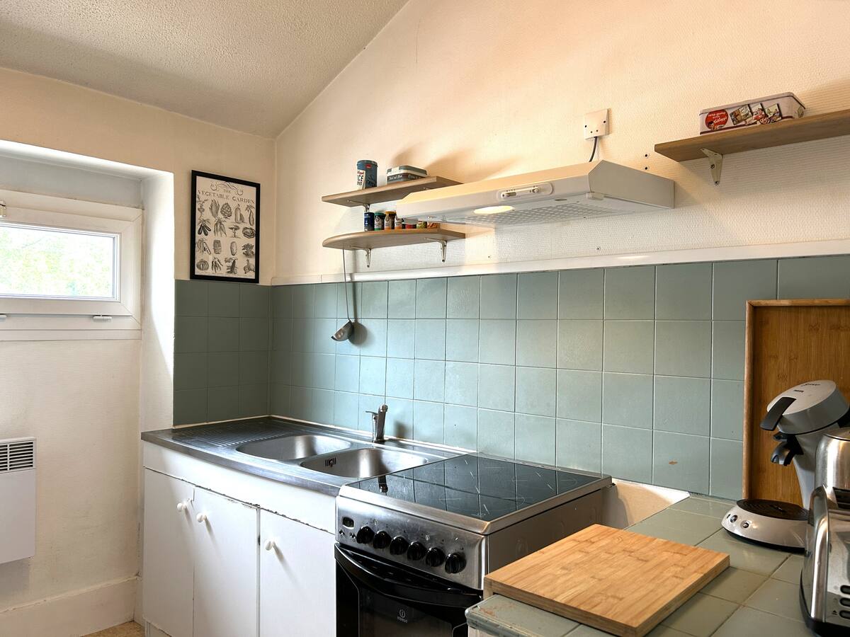 Le logement se compose d’un séjour lumineux équipé d’une télévision et d’un espace de travail dédié, parfait pour télétravailler ou organiser vos journées. La chambre cosy dispose d’un lit double confortable, idéale pour des nuits reposantes. Vous trouverez également une cuisine entièrement équipée avec tout le nécessaire pour cuisiner : vaisselle, ustensiles, plaques de cuisson, micro-ondes, etc. La salle de bain est dotée d’une baignoire, parfaite pour se détendre après une longue journée. Le Wi-Fi haut débit est disponible dans tout le logement, et tout le linge de maison est fourni (draps, serviettes, torchons) pour garantir votre confort du début à la fin de votre séjour.
