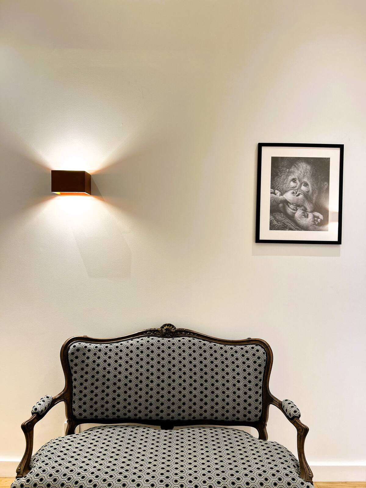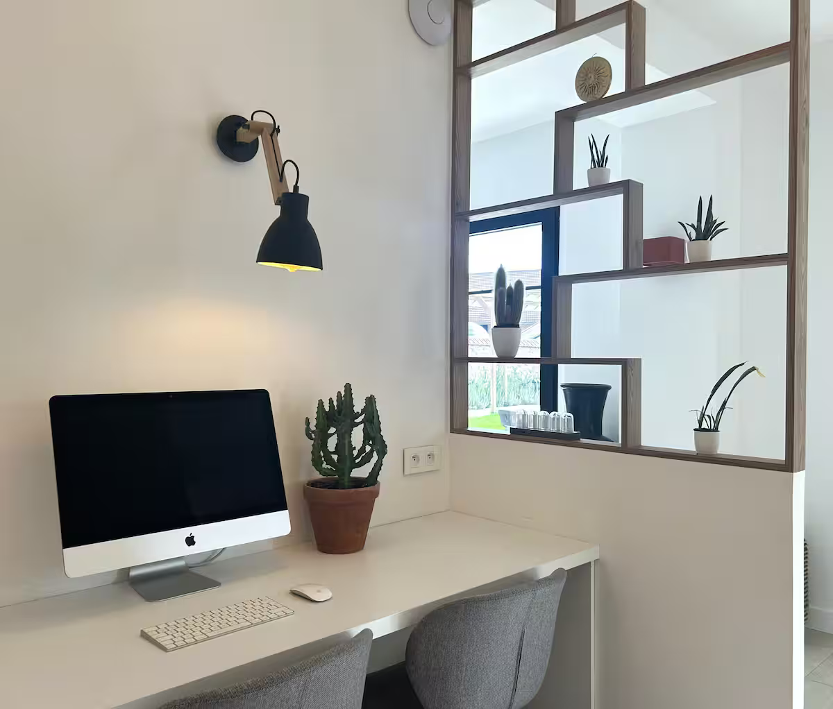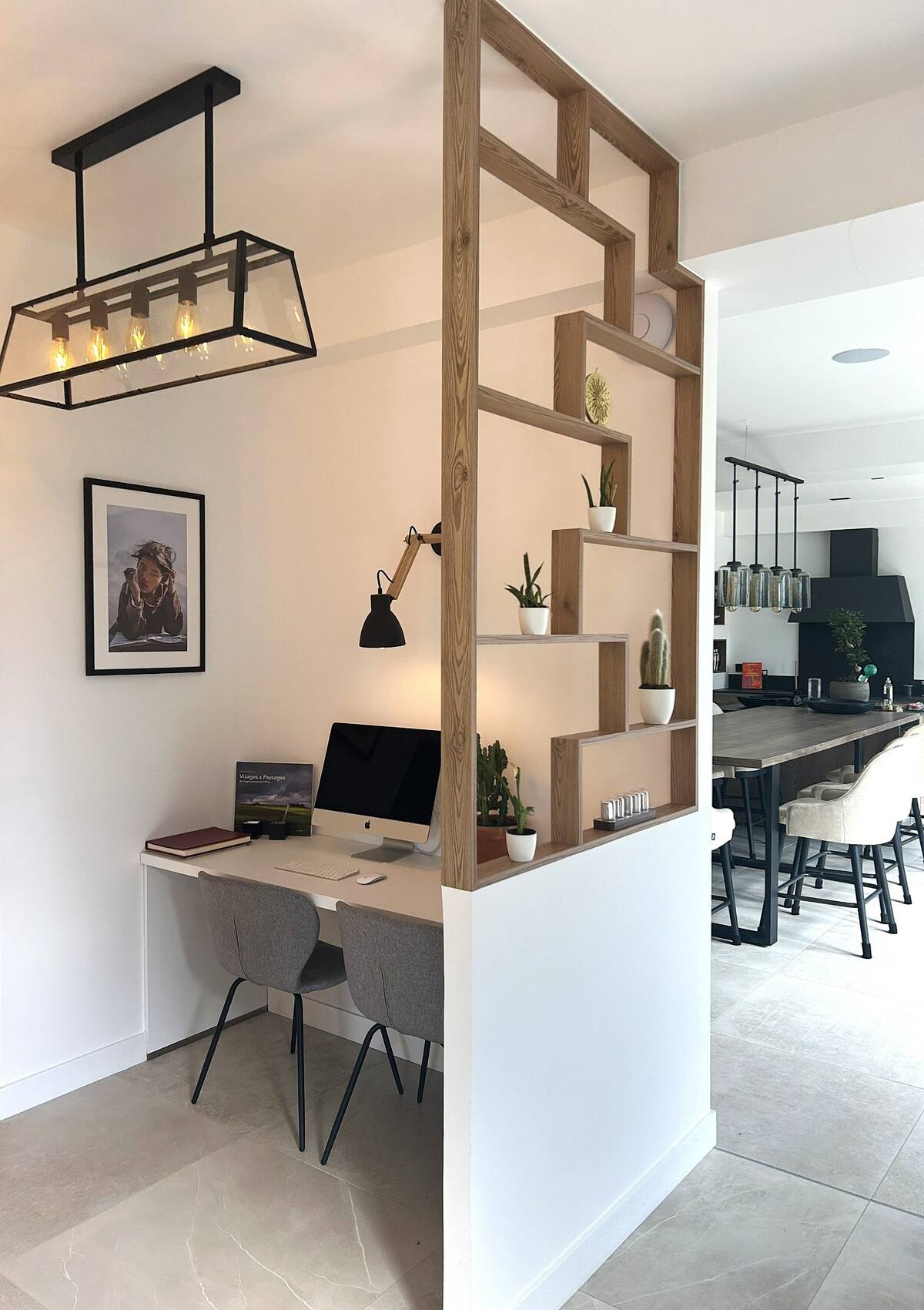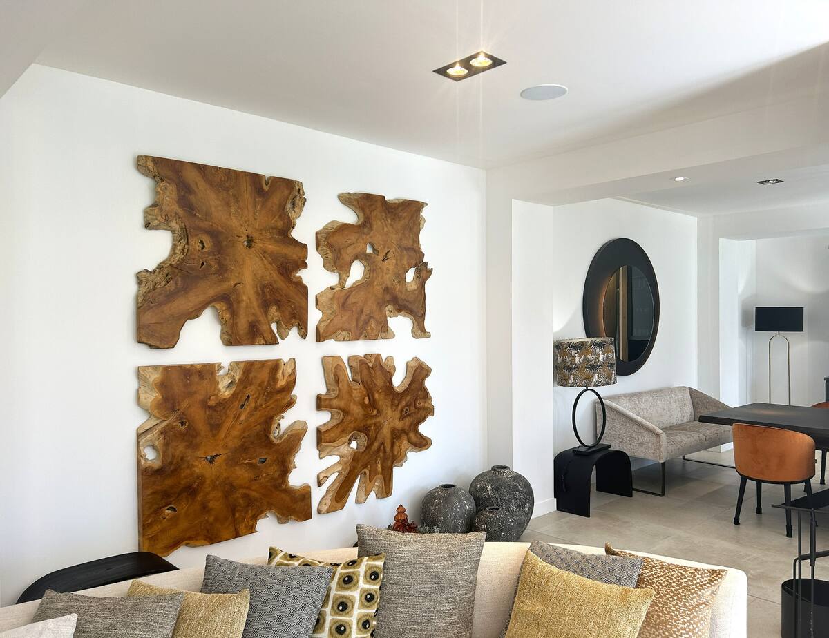 Le salon, spacieux et baigné de lumière naturelle, devient un point de ralliement où l’on aime s’attarder, lire, discuter ou simplement savourer le calme.