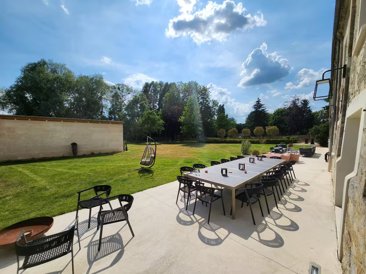 À l’extérieur, la nature s’invite avec simplicité : piscine, pétanque, ping-pong, et espaces pour s’allonger, discuter, rêver.