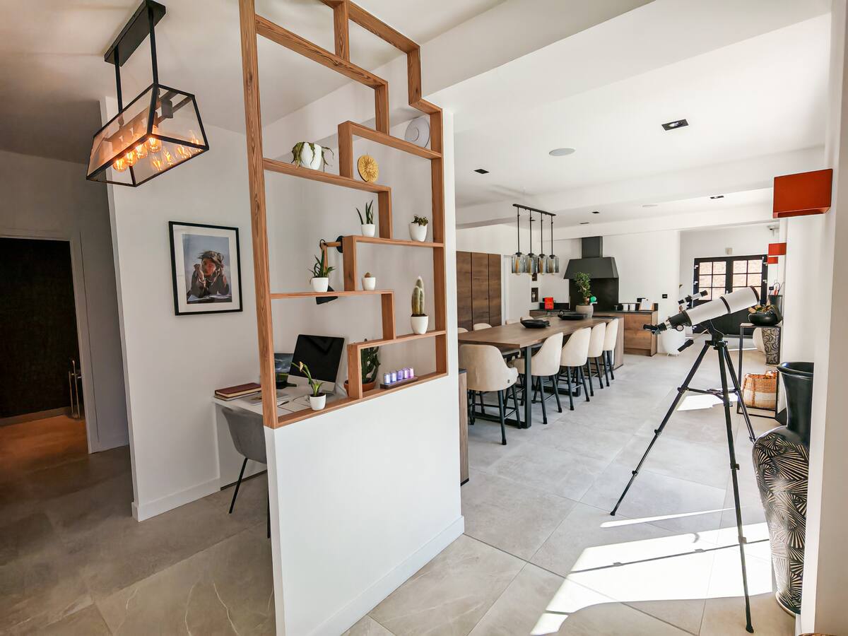 La salle à manger attenante offre un cadre élégant mais sans formalisme, parfait pour des repas conviviaux et sans contrainte.
