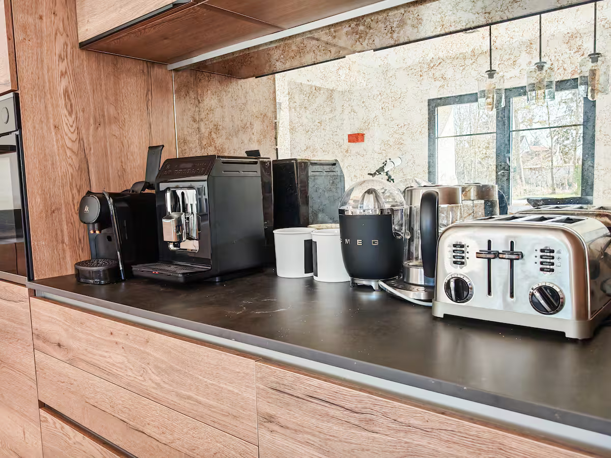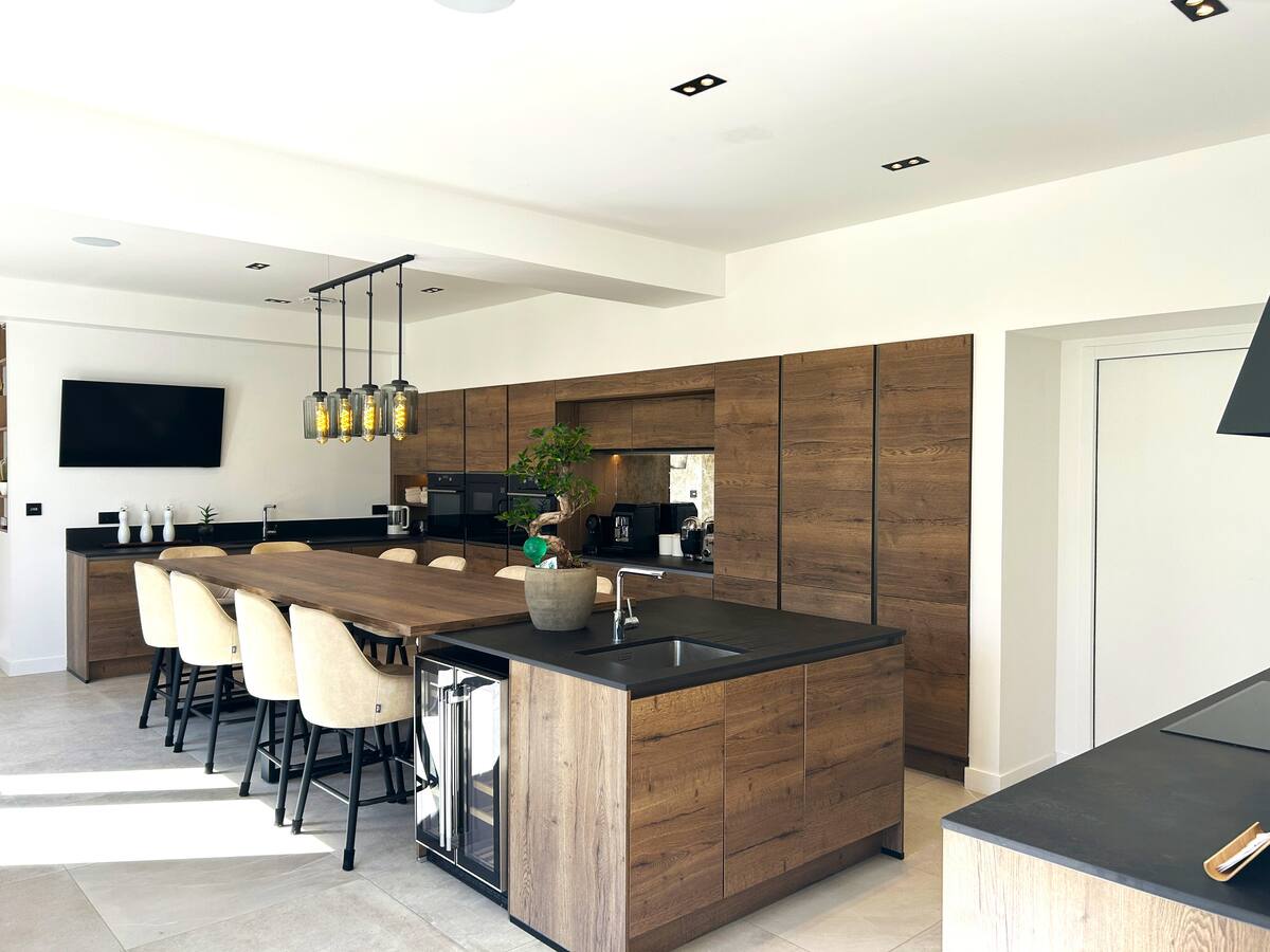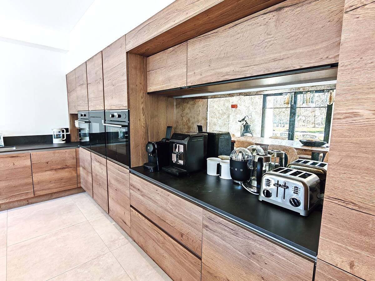 La cuisine, entièrement équipée, invite à prendre son temps, à cuisiner comme chez soi, dans un espace fluide et chaleureux.