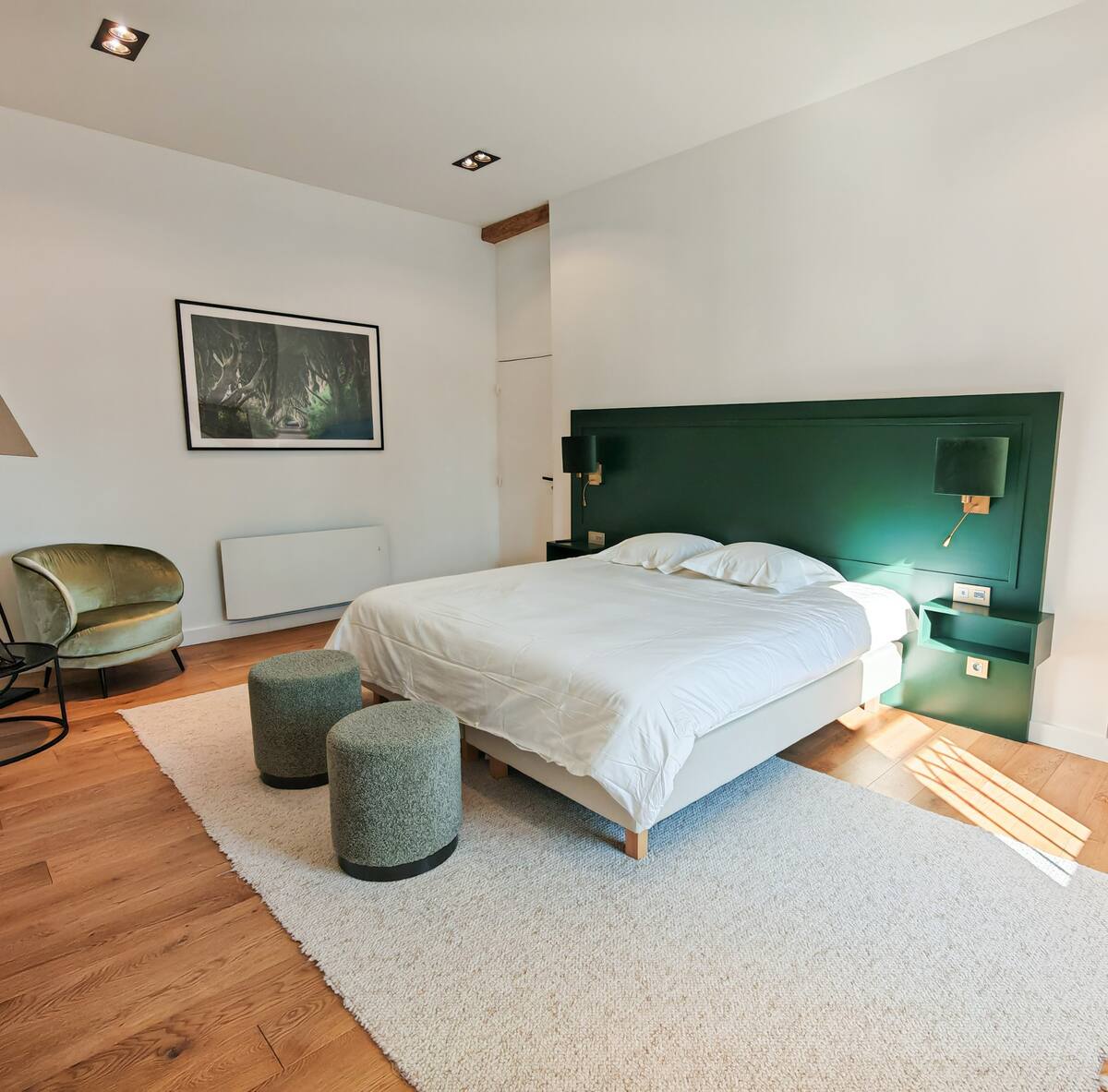 Côté nuit, les 7 chambres offrent un confort sans compromis, avec leurs salles de bain privatives et leurs grands dressings.