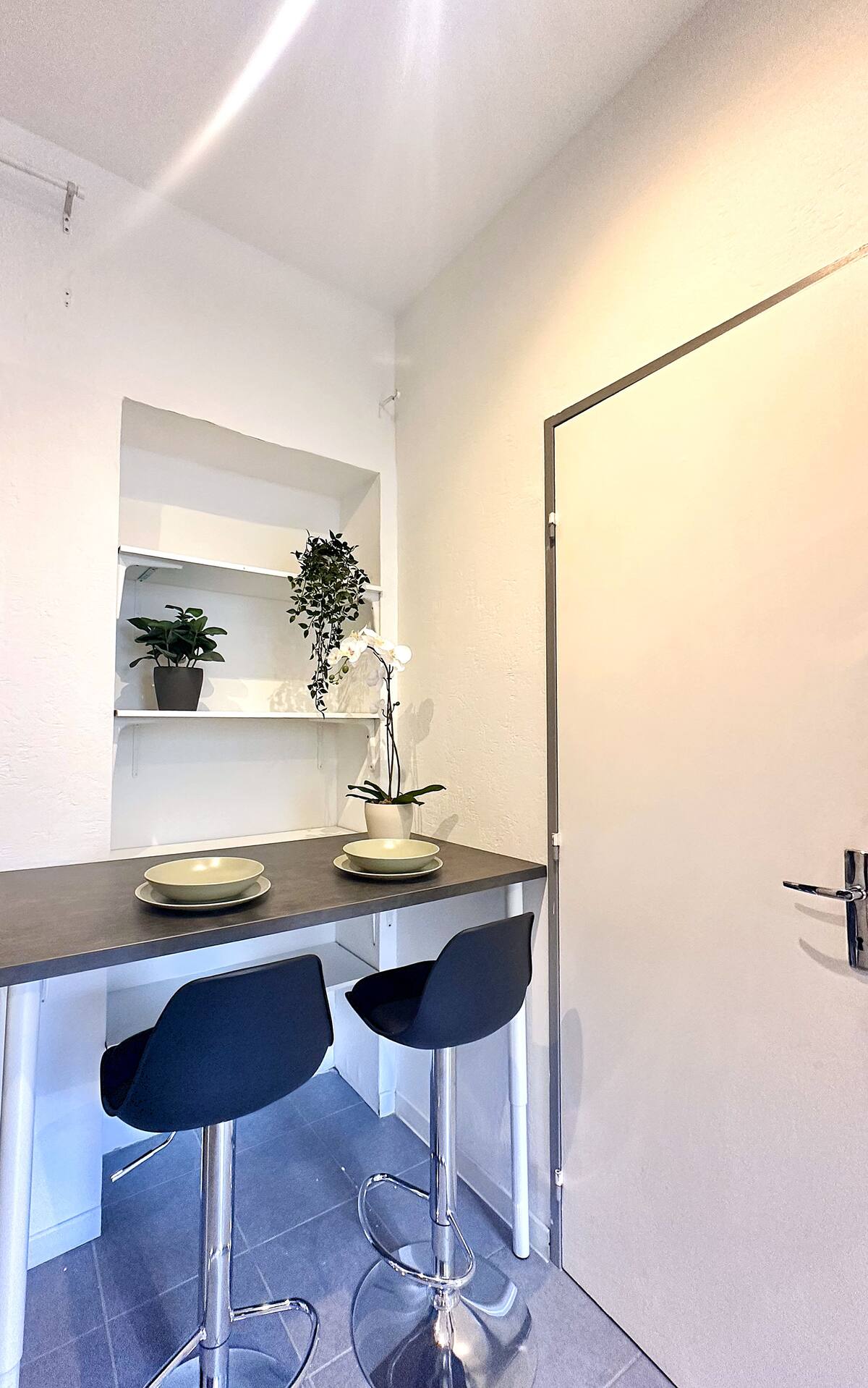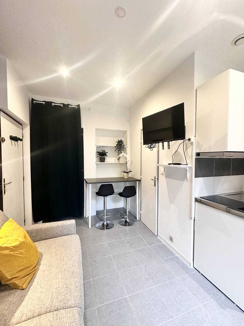 Ce studio lumineux est parfait pour un séjour pratique et agréable. Il dispose d’un séjour confortable, d’une kitchenette entièrement équipée et d’un espace repas pour vos repas. La salle de bain moderne complète ce cadre fonctionnel. Que ce soit pour un voyage professionnel ou une escapade, ce studio est idéal pour explorer la ville tout en profitant de commodités pratiques.