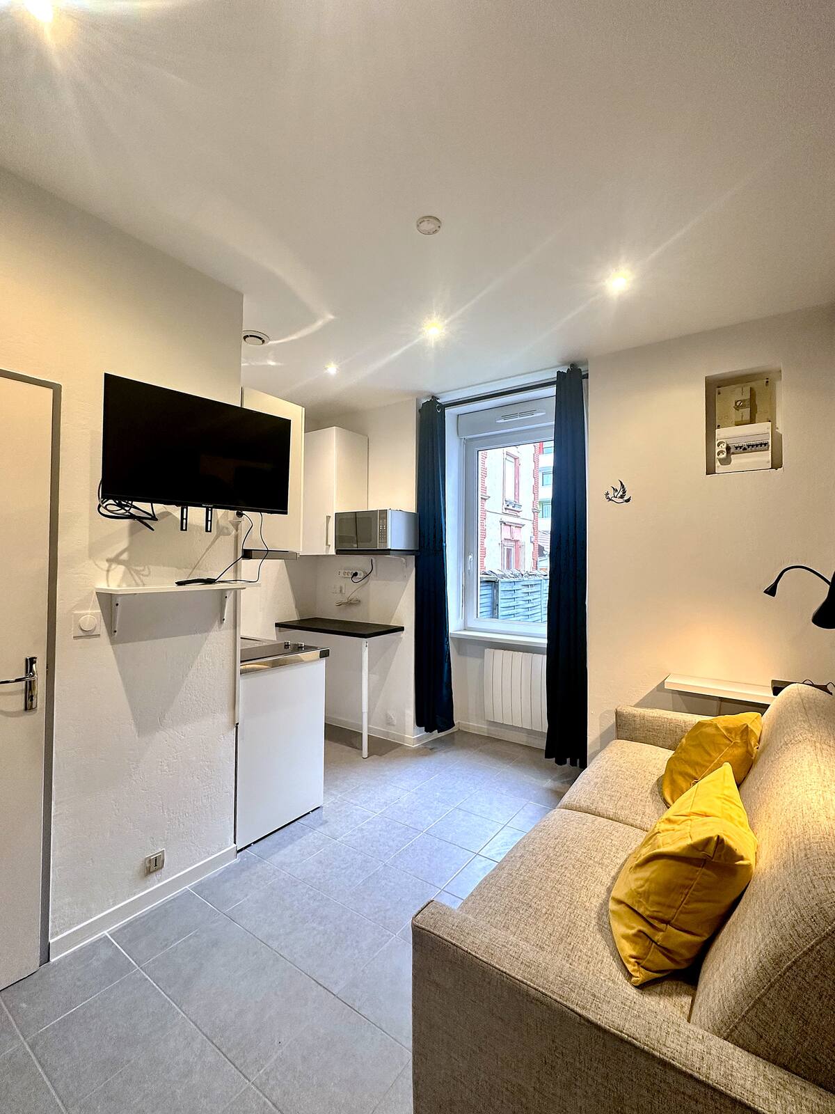 Ce charmant studio situé au 4 Rue des Orphelins à Mulhouse offre un espace lumineux et fonctionnel. Il comprend un séjour avec un canapé-lit, une télévision et une connexion Wi-Fi pour votre confort. La kitchenette entièrement équipée vous permettra de préparer vos repas, et un espace repas est prévu pour vous permettre de manger en toute tranquillité. La salle de bain moderne et pratique complète ce logement, et l’intégralité du linge est fourni pour votre séjour. Idéal pour une escapade ou un voyage professionnel, ce studio vous offre un cadre agréable et bien situé pour découvrir Mulhouse.