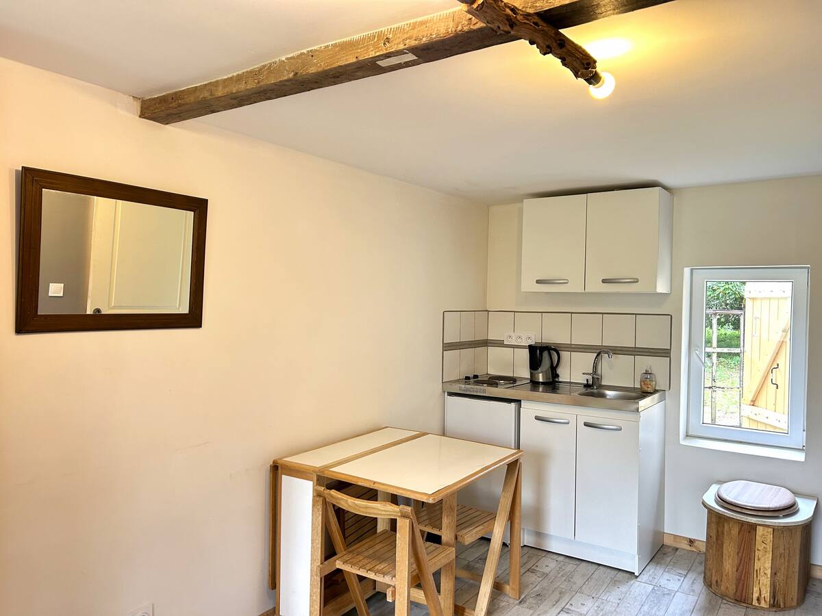 Ce studio chaleureux et fonctionnel dispose de tout le nécessaire pour un séjour confortable à la campagne. Il est équipé d’un canapé-lit confortable, d’une kitchenette pratique pour préparer vos repas, ainsi que d’une salle de bain privative avec douche.